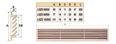 Деревянная вентиляционная решетка, дуб 100x550