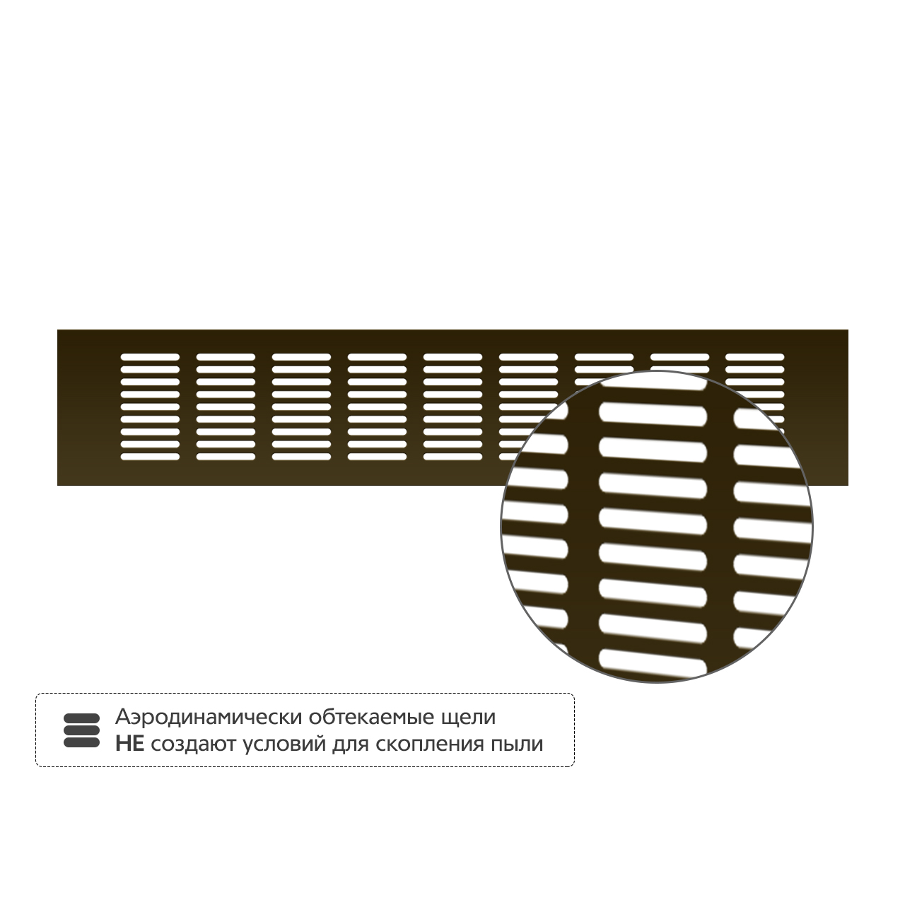 • Аэродинамически обтекаемые щели не создают условий для скопления пыли