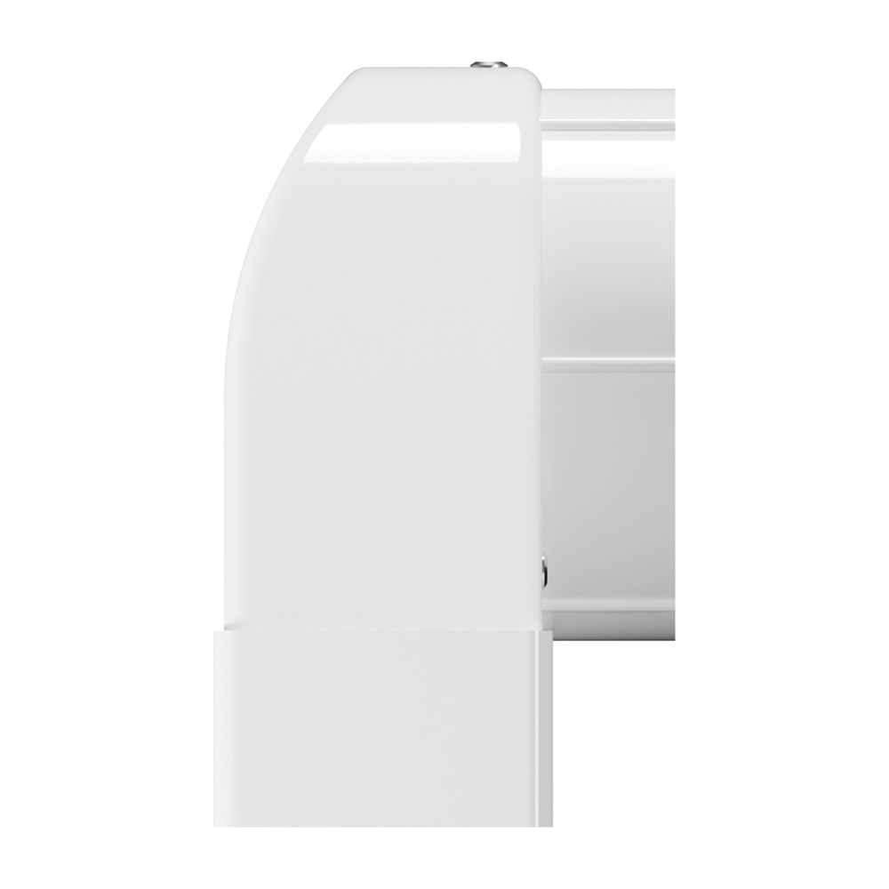 Решетка выполнена из оцинкованной стали толщиной 1,5 мм, что гарантирует прочность конструкции и долгий срок службы. Декоративная часть решетки окрашена белой порошковой краской с текстурой муарового шелка. Благодаря чему декоративная часть решетки гармонично сочетается с белым матовым полотном натяжного потолка, создавая единый стильный образ.