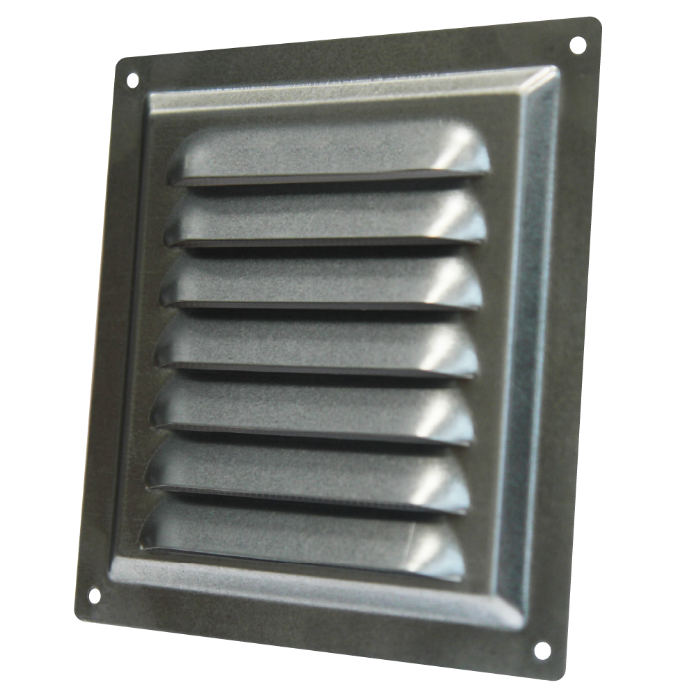 Вентиляционная решетка МЦ изготавливается из оцинкованной стали. Имеет наклонные жалюзи и антимоскитную сетку для защиты от насекомых. Сетка устанавливается в специальном углублении.