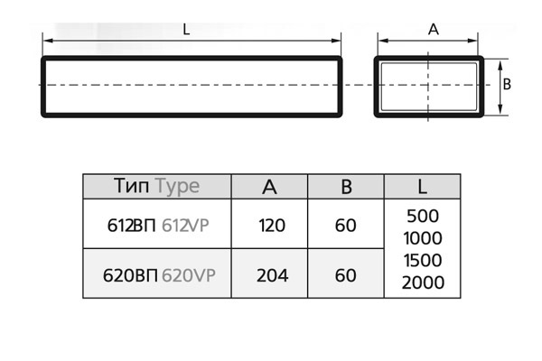 Воздуховод прямоугольный ПВХ 60х120, L=2м