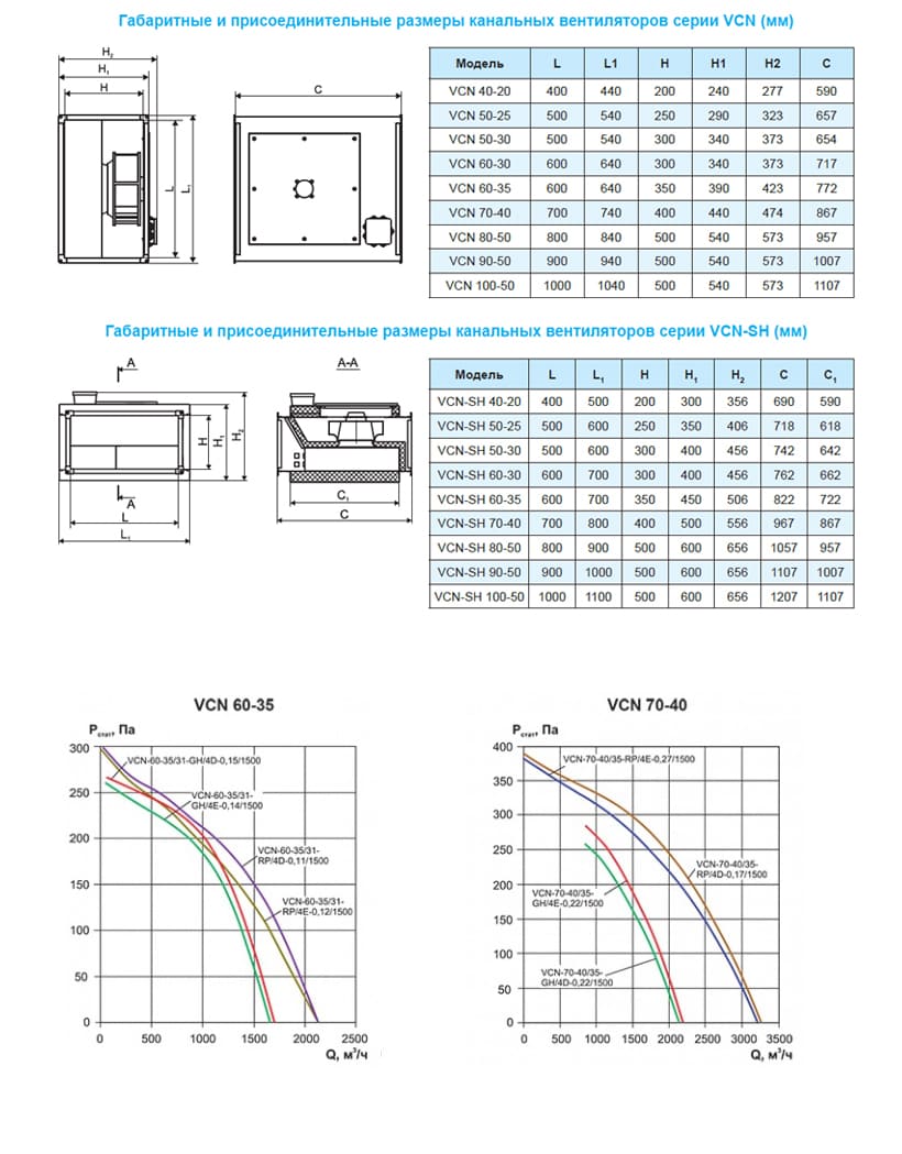 Возможно изготовление вентиляторов VCN в двух комплектациях, в зависимости от требуемых аэродинамических характеристик: