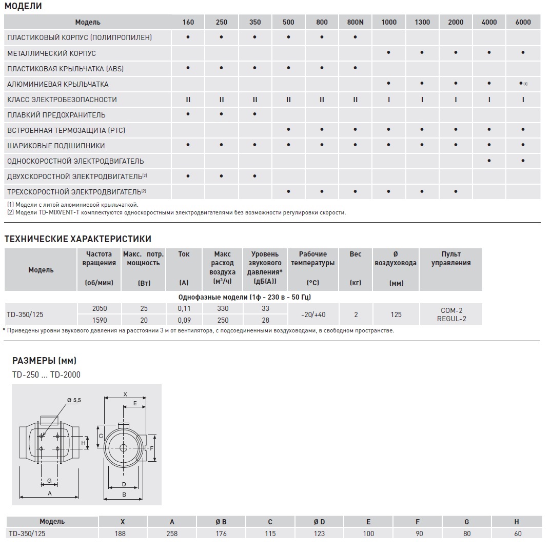 уровень шума и габаритные размеры). Вентиляторы серии TD предназначены для