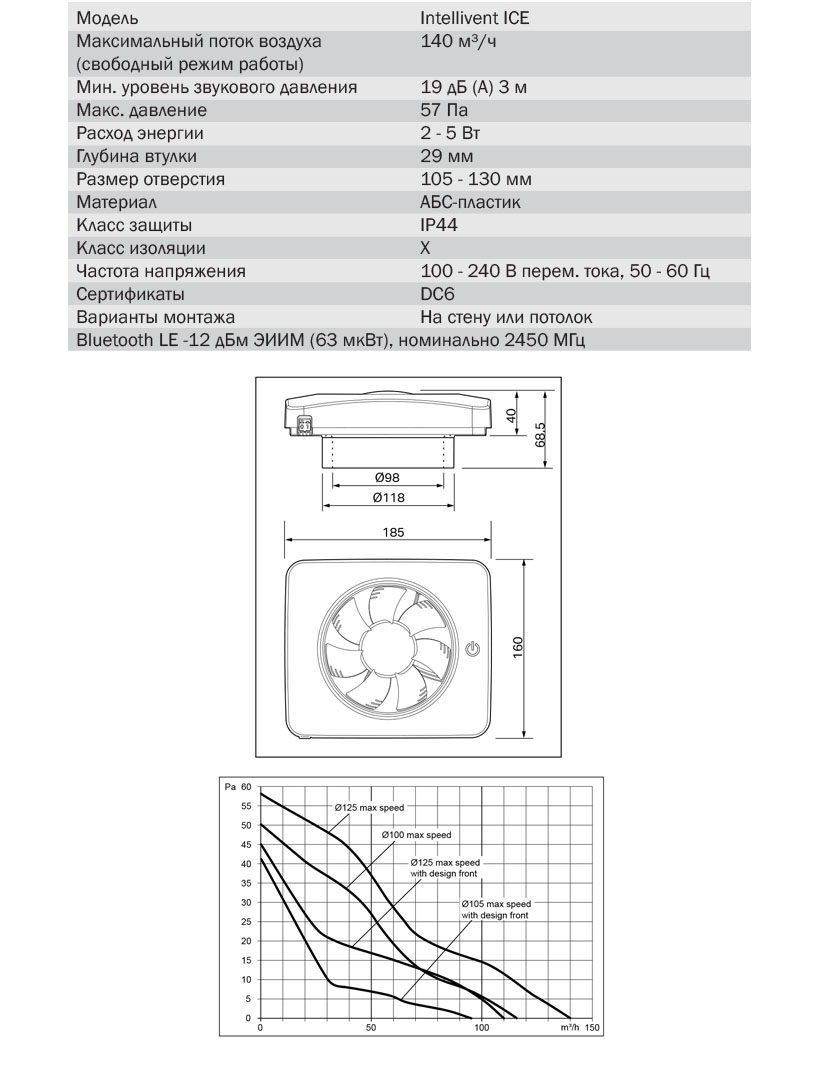 Вентилятор для ванной комнаты Fresh Intellivent ICE - инновационный продукт, который обладает непревзойденными характеристиками. Вентилятор идеален для всех зон, где есть повышенная влажность и запахи: ванные комнаты, санузлы, прачечные, подвалы или летние домики.