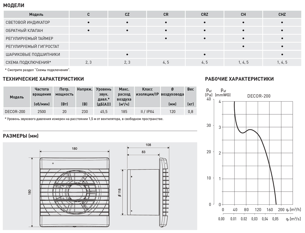 Вытяжной вентилятор Decor оснащен обратным клапаном, что препятствует обратному проникновению воздуха из вентиляции в помещение.