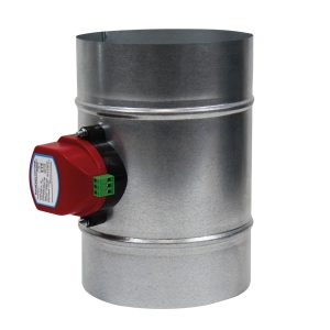 Воздушный клапан с электроприводом — это управляемая «заслонка» для вентиляционных каналов. В нужный момент она полностью перекрывает поток воздуха в системе вентиляции или кондиционирования — например, чтобы отключить приток воздуха в неиспользуемое помещение или предотвратить попадание холодного воздуха зимой. Клапан выполнен из прочной оцинкованной стали, устойчивой к коррозии даже во влажных помещениях. Заслонка плотно прилегает к корпусу по всему периметру, поэтому при закрытии воздух практически не просачивается мимо. Электропривод работает от безопасного напряжения 24 В, привод без возвратной пружины имеет крутящий момент 2 Нм и мощность менее 5 Вт. и надёжно удерживает заслонку в заданном положении без дополнительных фиксаторов. В открытом состоянии клапан не мешает свободному движению воздуха по каналу, а в закрытом — обеспечивает полное перекрытие потока. Доступны три распространённых размера для совместимости с любыми стандартными воздуховодами: 100, 125 и 160 мм.